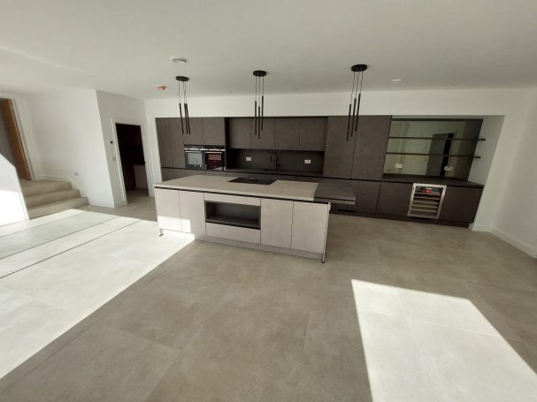 This spectacular space features a luxury German fitted kitchen with large island and drinks area.
