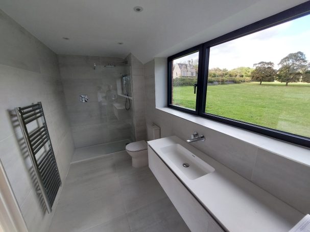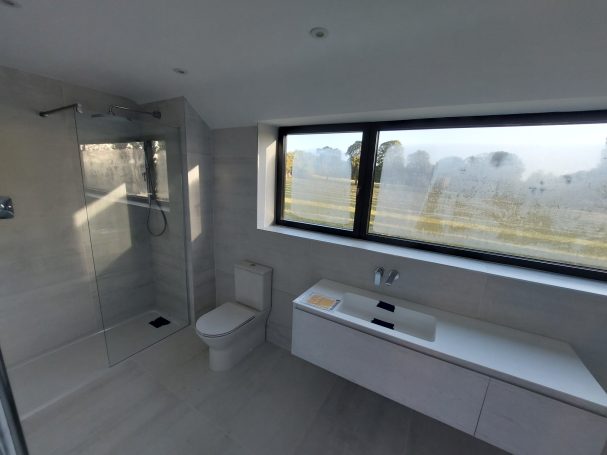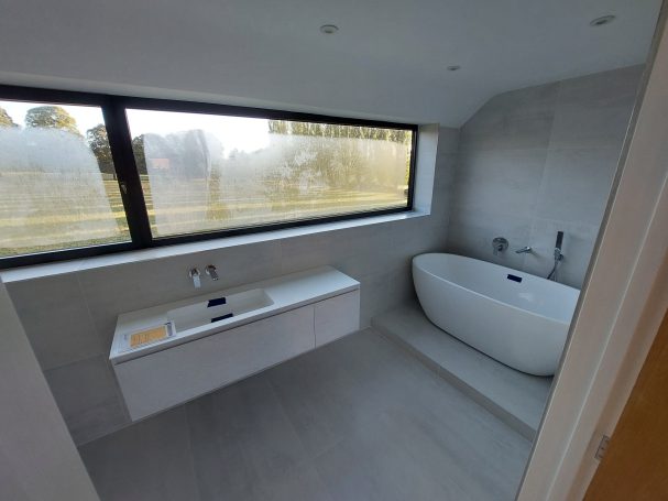 We worked closely with architect Daniel Evans of Matthew Montague Architects to maximise the potential of the plot and create this stunning property. Local builder Allsopp Construction, with a reputation for high quality homes in the area, undertook the build of this energy efficient homes with high performance insulation throughout, triple glazed windows, Air Source Heat Pump fed underfloor heating and hot water and MVHR air circulation system.