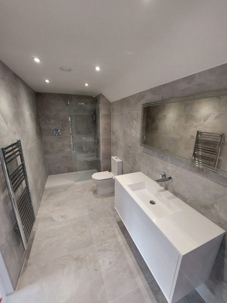 With en-suite walk in shower , floating vanity unit with illuminated mirror above